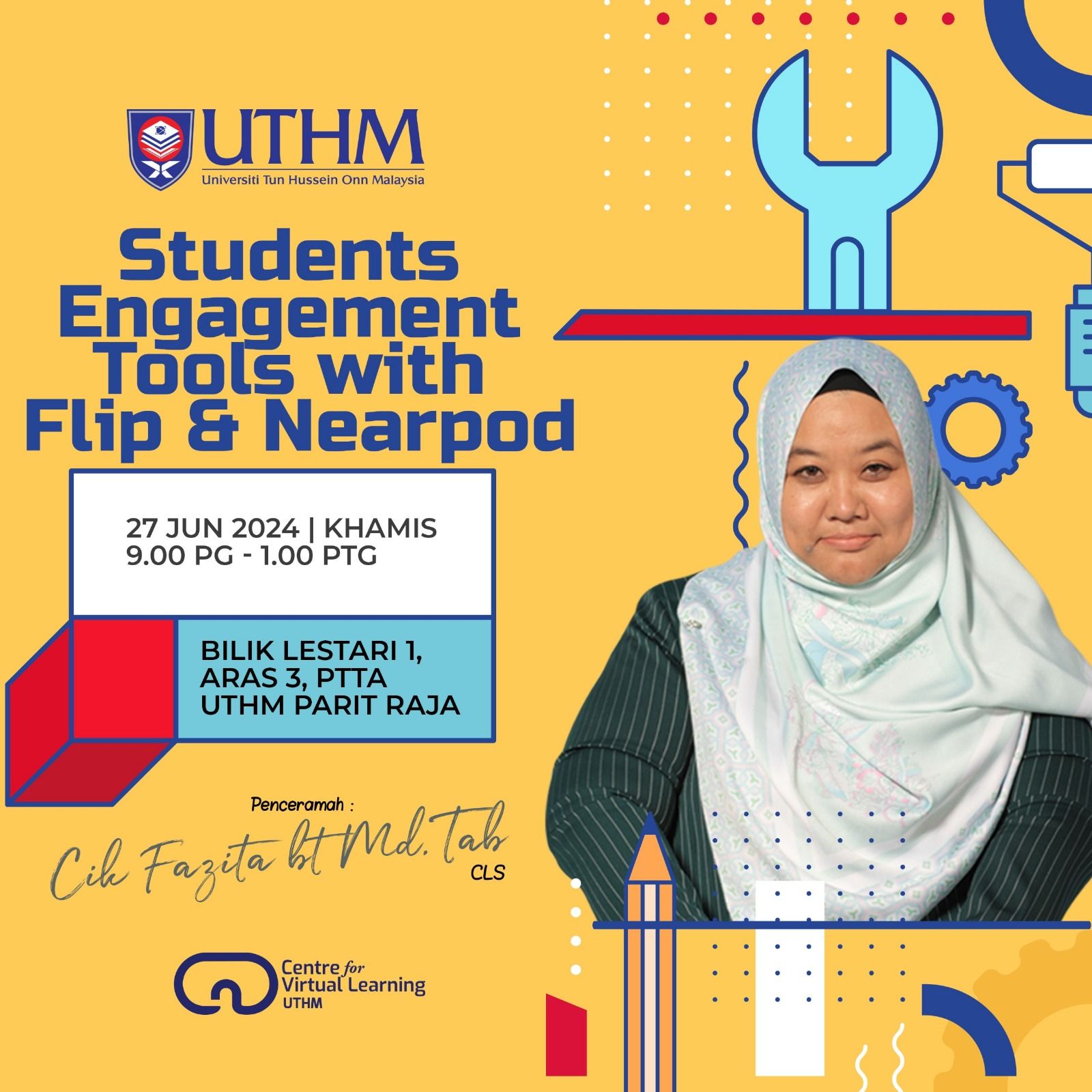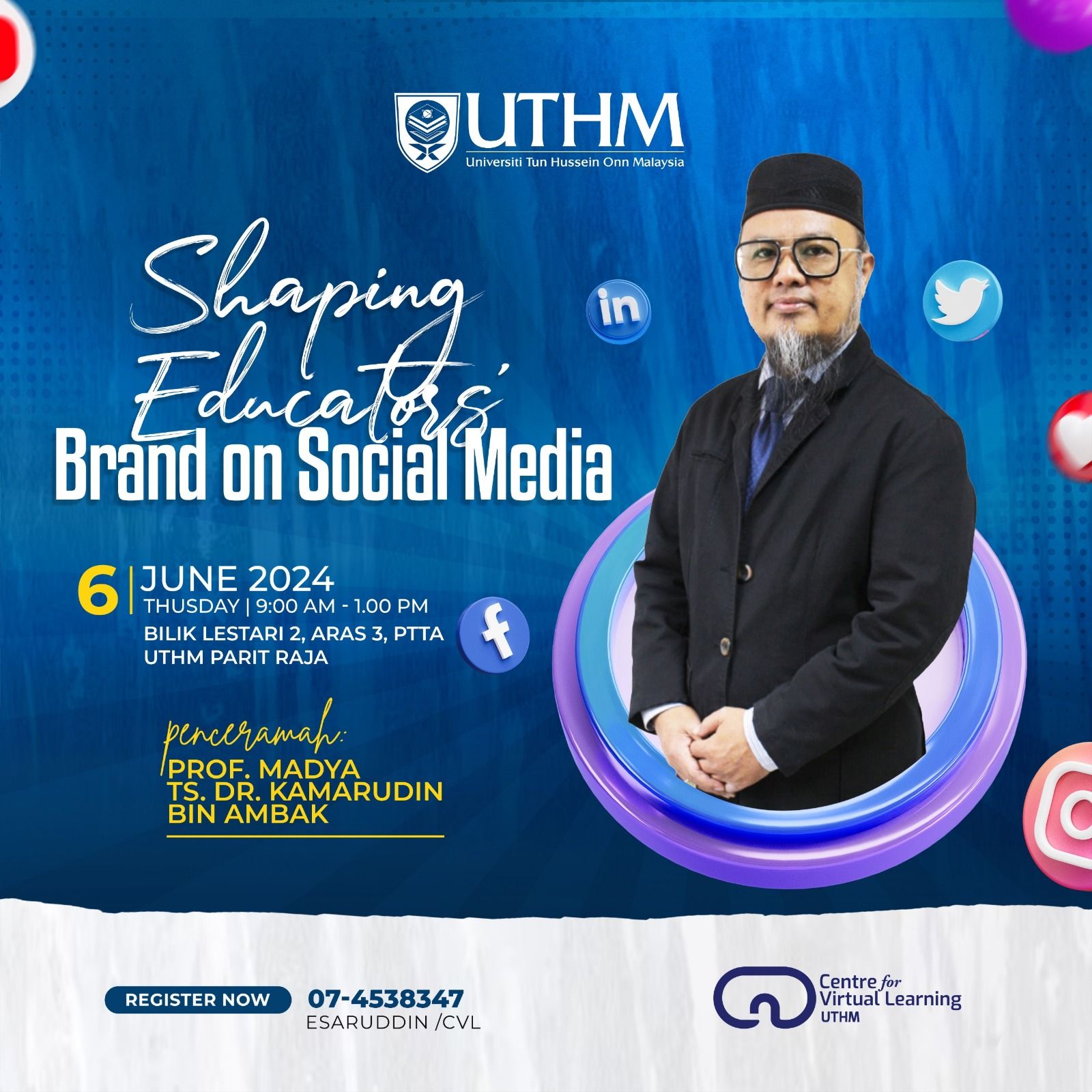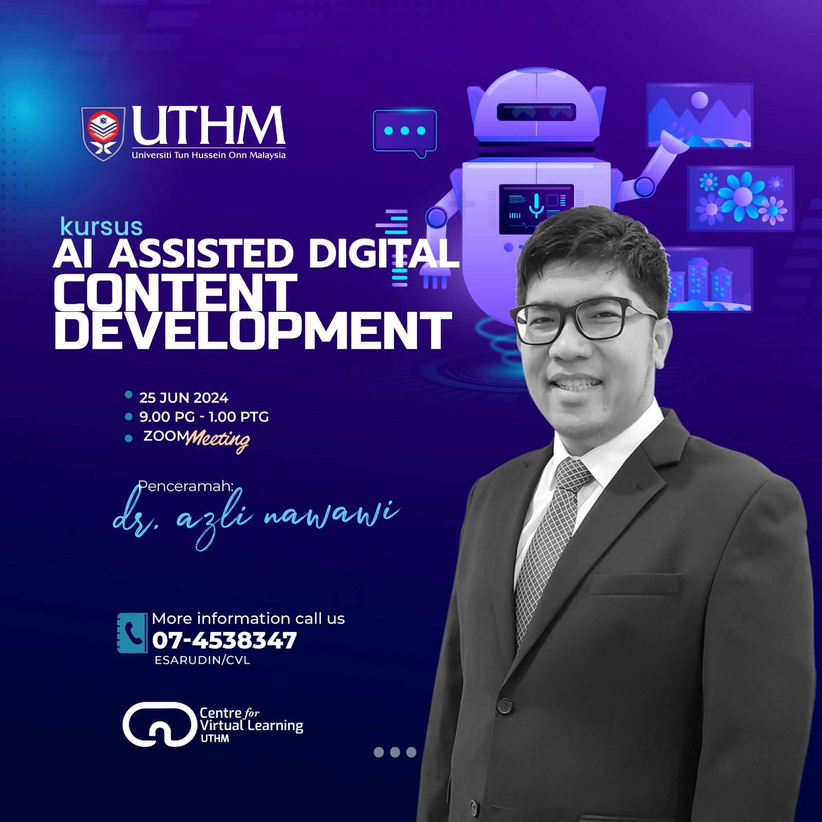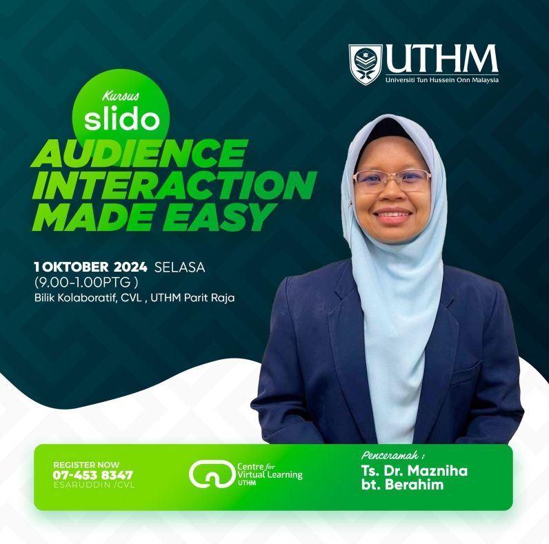 Pusat Pembelajaran Maya (CVL) merupakan salah satu pejabat yang bertanggungjawab dalam penyediaan kursus dan latihan tahunan bagi seluruh warga UTHM. Pelbagai aktiviti dan program latihan telah dirancang bagi meningkatkan kemahiran staf dalam mengaplikasikan teknologi terkini dalam proses Pengajaran dan Pembelajaran (P&P) serta bidang tugas mereka.